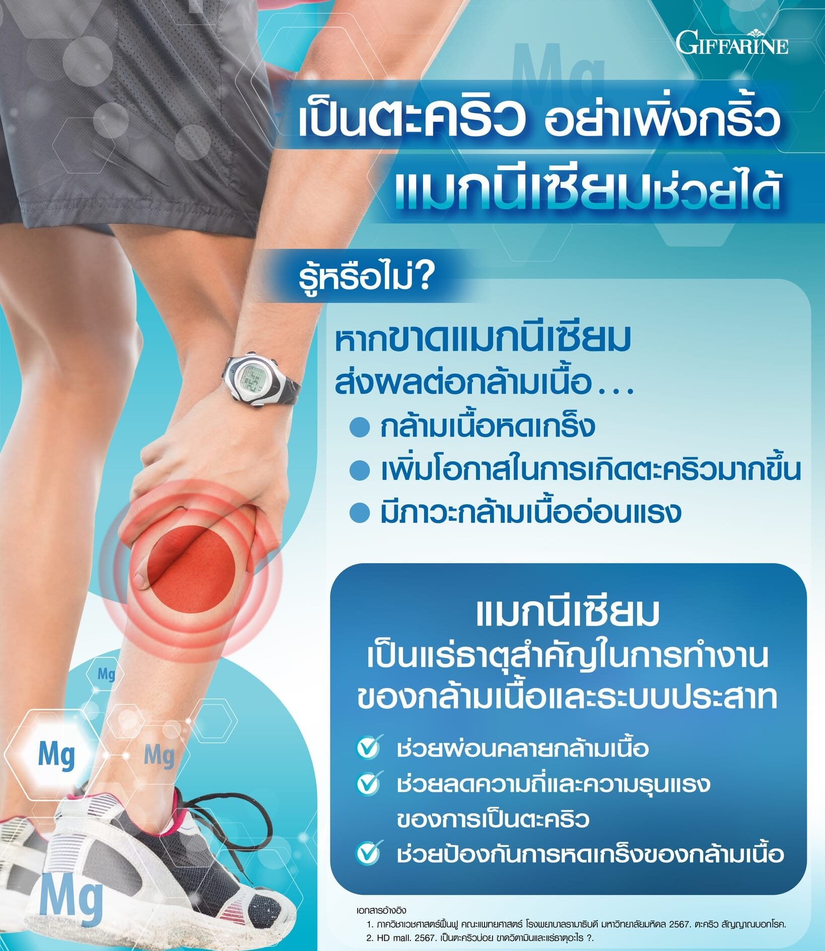 ผมออกกำลังกายบ่อย เป็นตะคริวกลางคืนประจำ เพื่อนแนะนำตัวนี้ กินแล้วดีขึ้นจริงครับ ตะคริวไม่มาเยือนแล้ว หลับสบายขึ้นด้วย