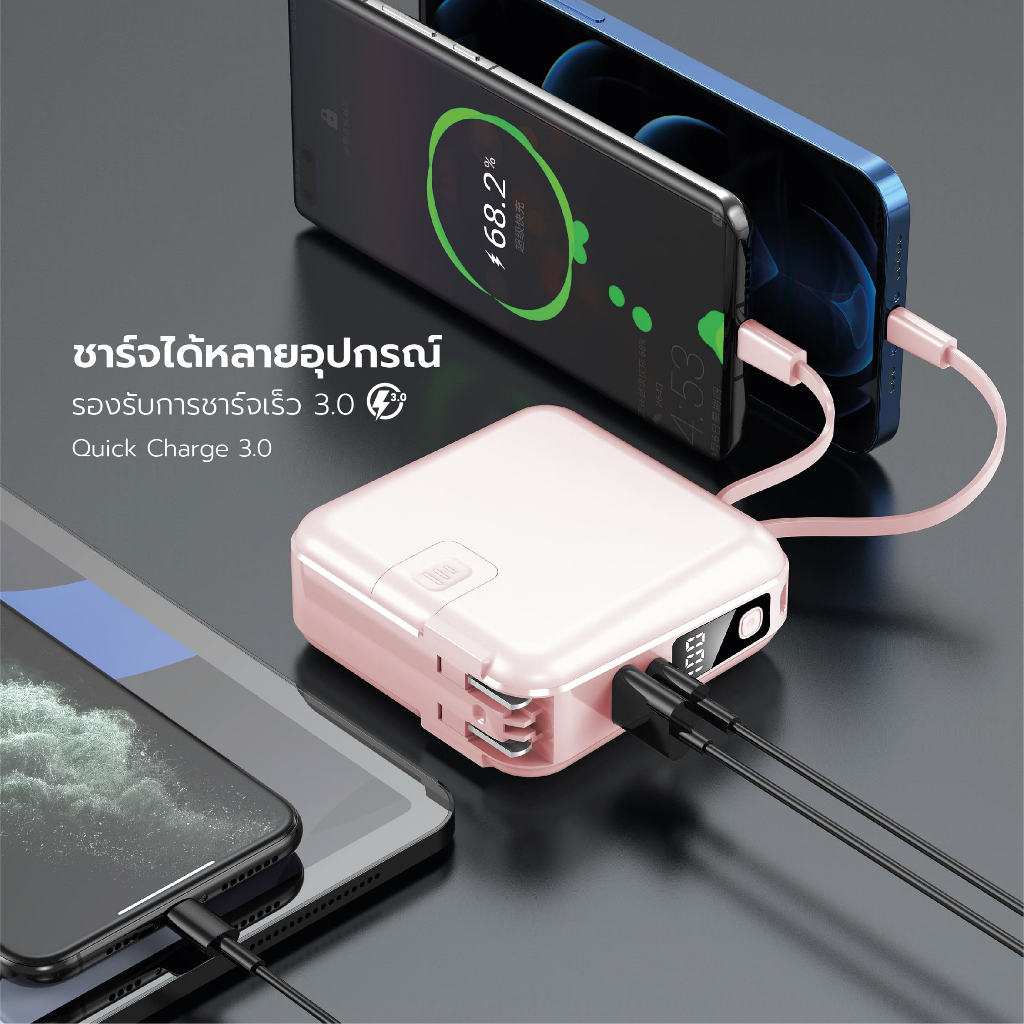 ชาร์จเร็ว PD20W สายชาร์จและขาปลั๊กในตัว Powerbank จอ LED ประกัน 1 ปี