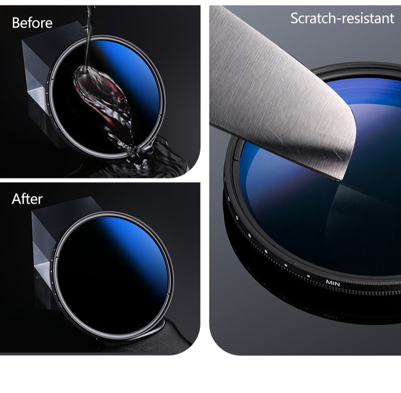 เคลือบสีน้ำเงิน: ตัวกรองมีการเคลือบสีน้ำเงิน ให้ประสิทธิภาพการมองเห็นที่ยอดเยี่ยมและเอฟเฟกต์ป้องกันแสงสะท้อน ลดรัศมีและการรบกวนและทำให้ภาพถ่ายชัดเจนและสมบูรณ์ยิ่งขึ้น