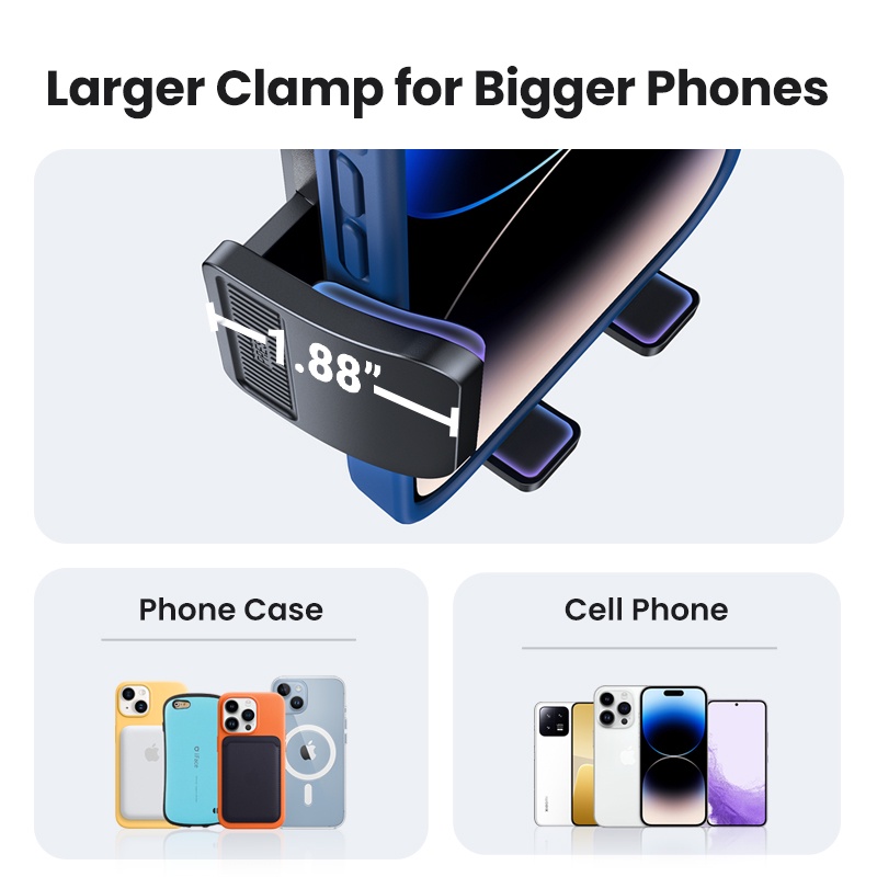 ด้วยลูกบอลหมุนได้ 360 องศาที่วางโทรศัพท์แดชบอร์ดสามารถถือโทรศัพท์ของคุณในแนวนอนหรือแนวตั้งได้อย่างปลอดภัย แขนยาวแบบยืดไสลด์สามารถขยายได้สูงสุด 7.48 นิ้วและหมุนได้ 220 องศาอย่างอิสระซึ่งช่วยให้คุณเข้าถึงโทรศัพท์ของคุณได้ไม่ว่าจะติดอยู่กับแผงหน้าปัดรถหรือกระจกหน้ารถ