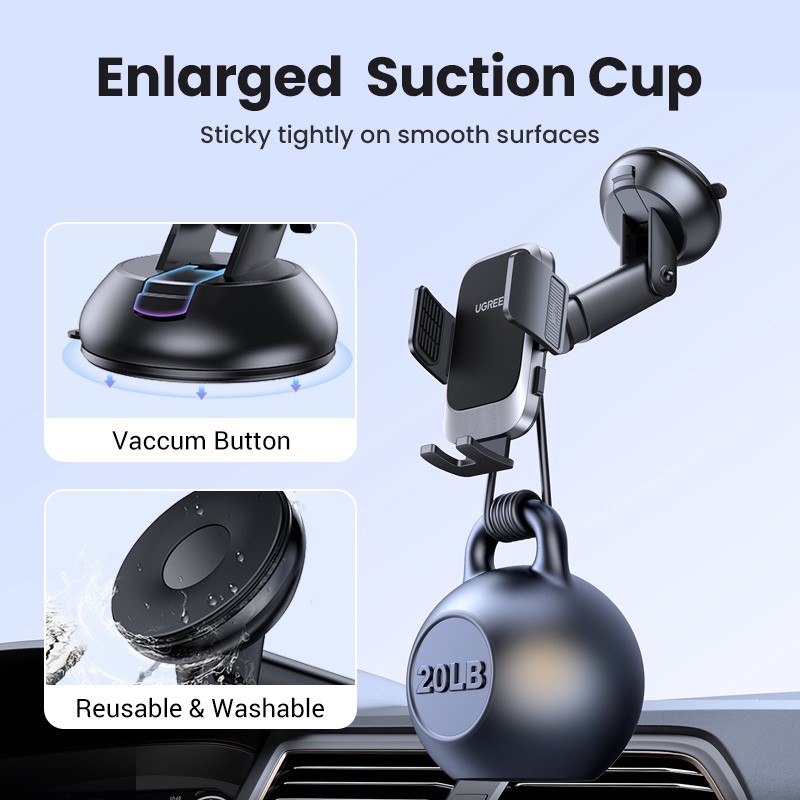 ที่วางโทรศัพท์แบบดูด UGREEN มีถ้วยดูดที่แข็งแรงเป็นพิเศษซึ่งสามารถติดเข้ากับแผงหน้าปัดหรือกระจกหน้ารถได้อย่างง่ายดาย แขนยาวแบบพับเก็บได้สามารถปรับได้ทุกมุมโดยไม่ปิดกั้นสายตาหรือรบกวนช่องระบายอากาศ