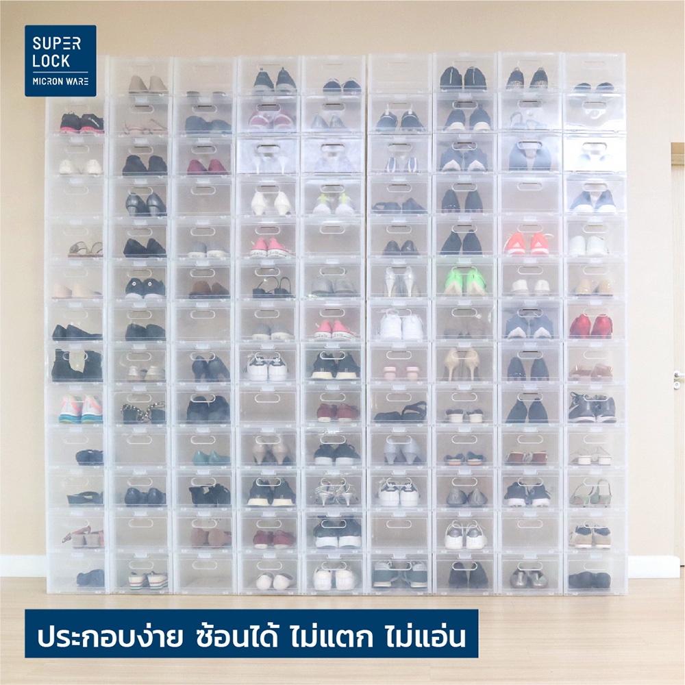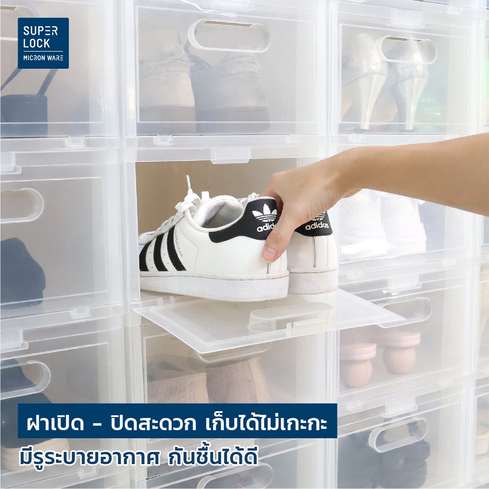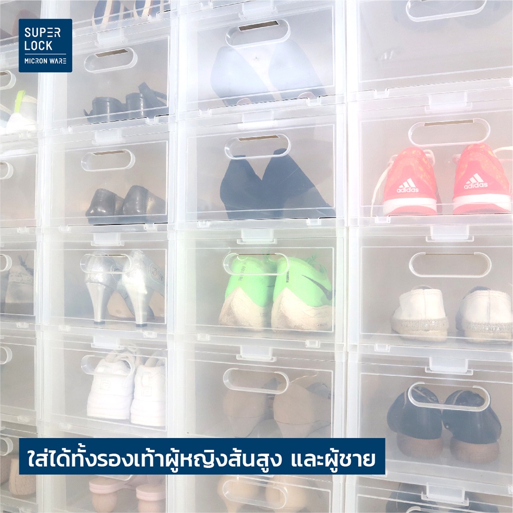 [ซื้อ 10 แถม 2] Super Lock กล่องรองเท้า รุ่น Super Box 5657 พลาสติกแข็ง เปิดฝาหน้า ซ้อนได้ ใส่รองเท้าหุ้มส้น ส้นสูงได้