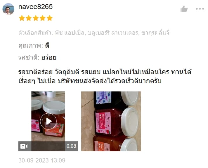 รายละเอียดผลิตภัณฑ์ : ผลิตภัณฑ์ทาขนมปังจากธรรมชาติ สูตรไม่เติมน้ำตาล ดอกไม้และผลไม้รวมกัน สูงถึง 84% กลิ่นหอมหวานจากเนื้อลิ้นจี่เต็มคำ ผสมด้วยความเปรี้ยวสดชื่นจากราสเบอร์รี เติมความพรีเมียมด้วยดอกซากุระที่ส่งตรงจากประเทศญี่ปุ่น ผสมผสานรสชาติเปรี้ยวและหวานเข้ากันอย่างลงตัว
