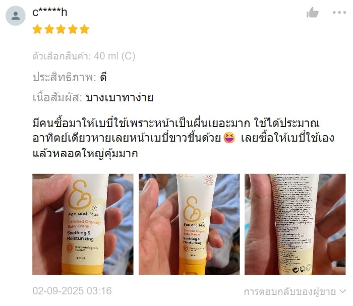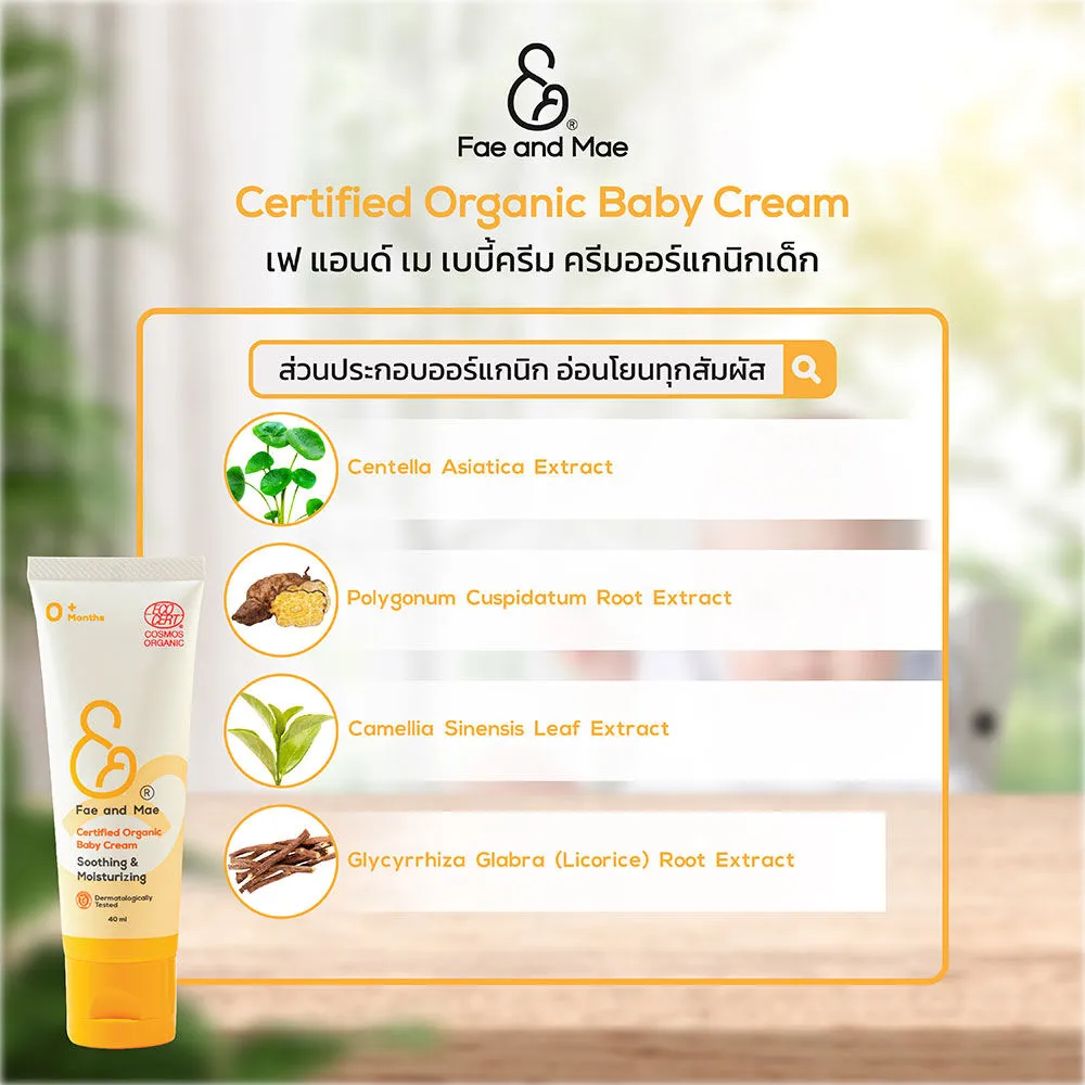 ✨เฟ แอนด์ เม เซอทิไฟด์ ออร์แกนิก เบบี้ ครีม✨ครีมออร์แกนิกสำหรับเด็ก เนื้อสัมผัสนุ่มบางเบา ใช้บำรุงผิวกายของลูกน้อยในทุกวันด้วยสารสกัดจากธรรมชาติที่คัดสรรอย่างพิถีพิถัน เพื่อให้ผิวรู้สึกเนียนนุ่ม หอมอ่อนๆ และไม่เหนอะหนะ เหมาะสำหรับใช้ได้บ่อยตามต้องการ ตั้งแต่ศีรษะจรดปลายเท้า