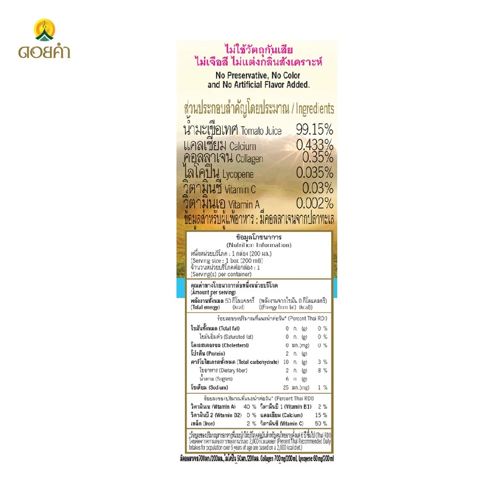 น้ำมะเขือเทศที่มากคุณประโยชน์ ปริมาณโซดียมต่ำ อีกหนึ่งทางเลือกเพื่อสุขภาพที่ดี น้ำผลไม้จากธรรมชาติ Not from Concentrate ไม่เจือสีและไม่แต่งกลิ่นสังเคราะห์